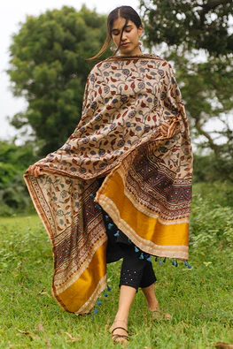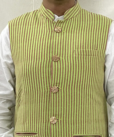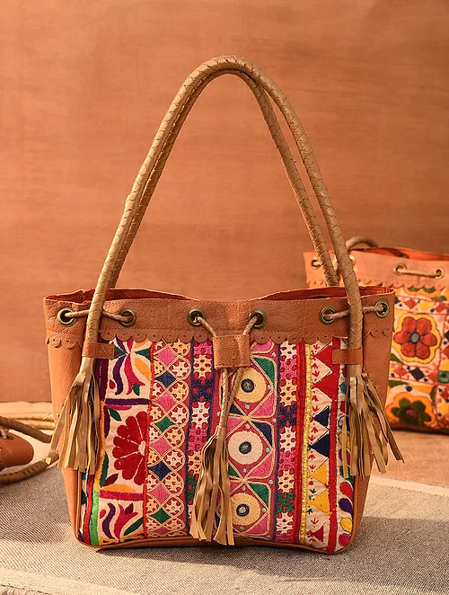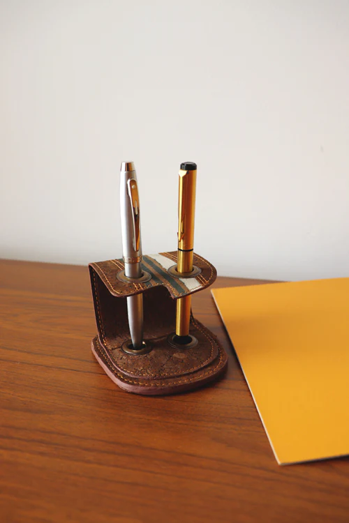 Kirgiti's' Brown Vegan Leather and Dabu Print Canvas Multi Stripes Pen Holder590
