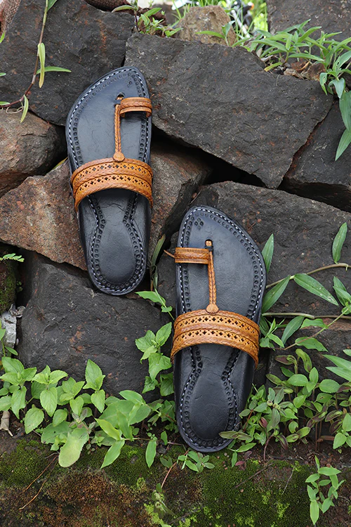 KALAPURI Mens Genuine Leather tanned toxic free leather Yellow Kolhapuri Chappal from Kolhapur.4240