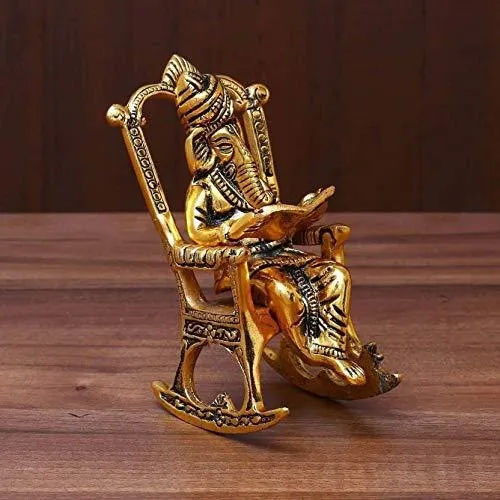 Golden Handmade Nirmala Handicrafts Metal Ganesha On Rocking Chair, For Decoration450